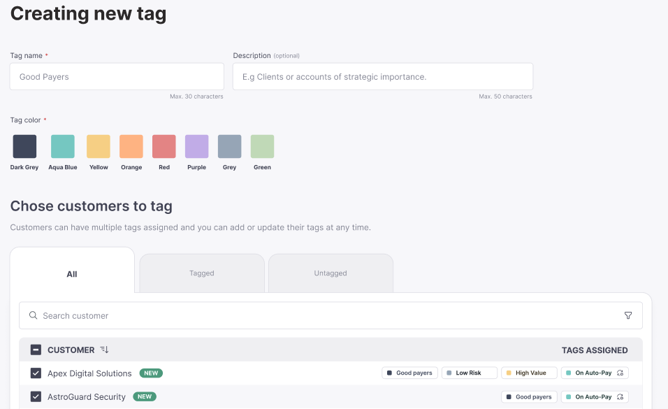 Send the right message to the right customer. You can now control who receives payment reminders and summaries using tags or individual customer selections.
