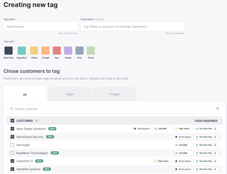 The Customer Tagging System enables partners to categorize customers using customizable tags for better segmentation and organization. Partners can create, manage, and assign tags, with system-generated tags automatically applied based on predefined rules. This feature enhances filtering, searching, and customer management while ensuring a seamless user experience.