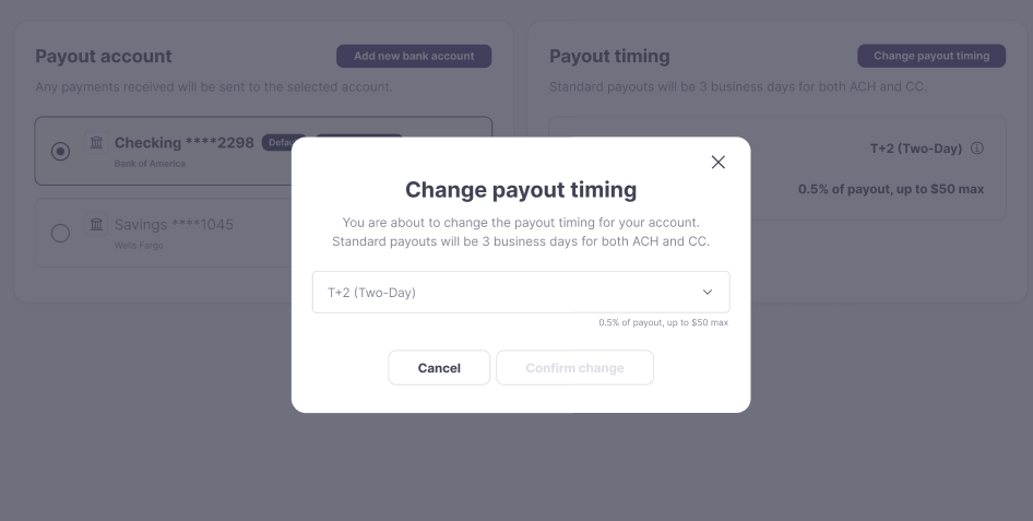 Partners currently receive payouts on a fixed T+3 schedule (three business days after a transaction). For those who need quicker access to funds, we’re introducing an early payout option, allowing partners to choose T+1 or T+2 payouts for a small fee. This flexibility helps businesses manage cash flow more efficiently and access their earnings when they need them most.