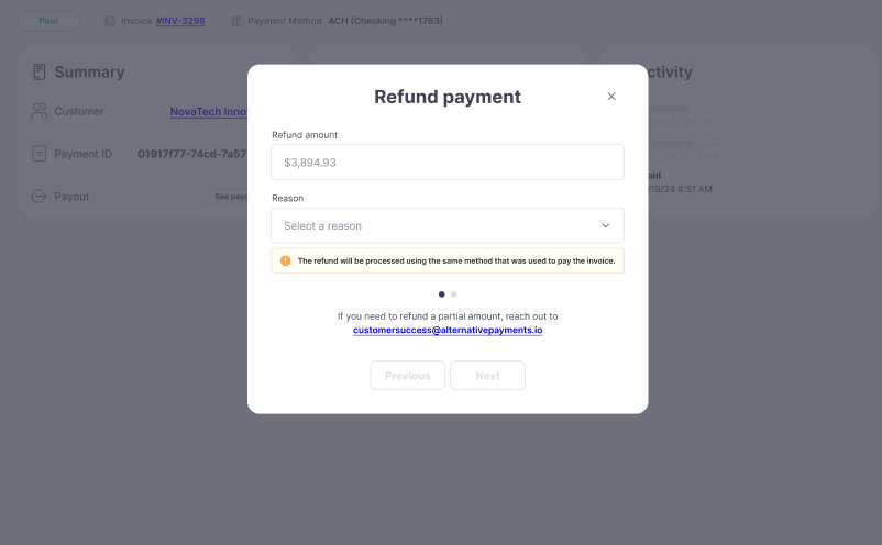 Refund management will allow partners to issue refunds directly to customers for scenarios such as overpayments, incorrect transactions, or other payment adjustments by allowing both full and partial refunds through an automated, self-service process in the partner dashboard.